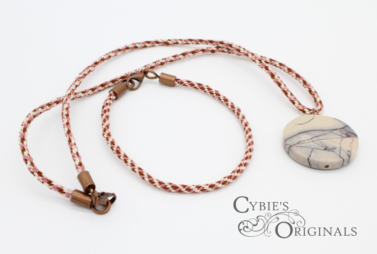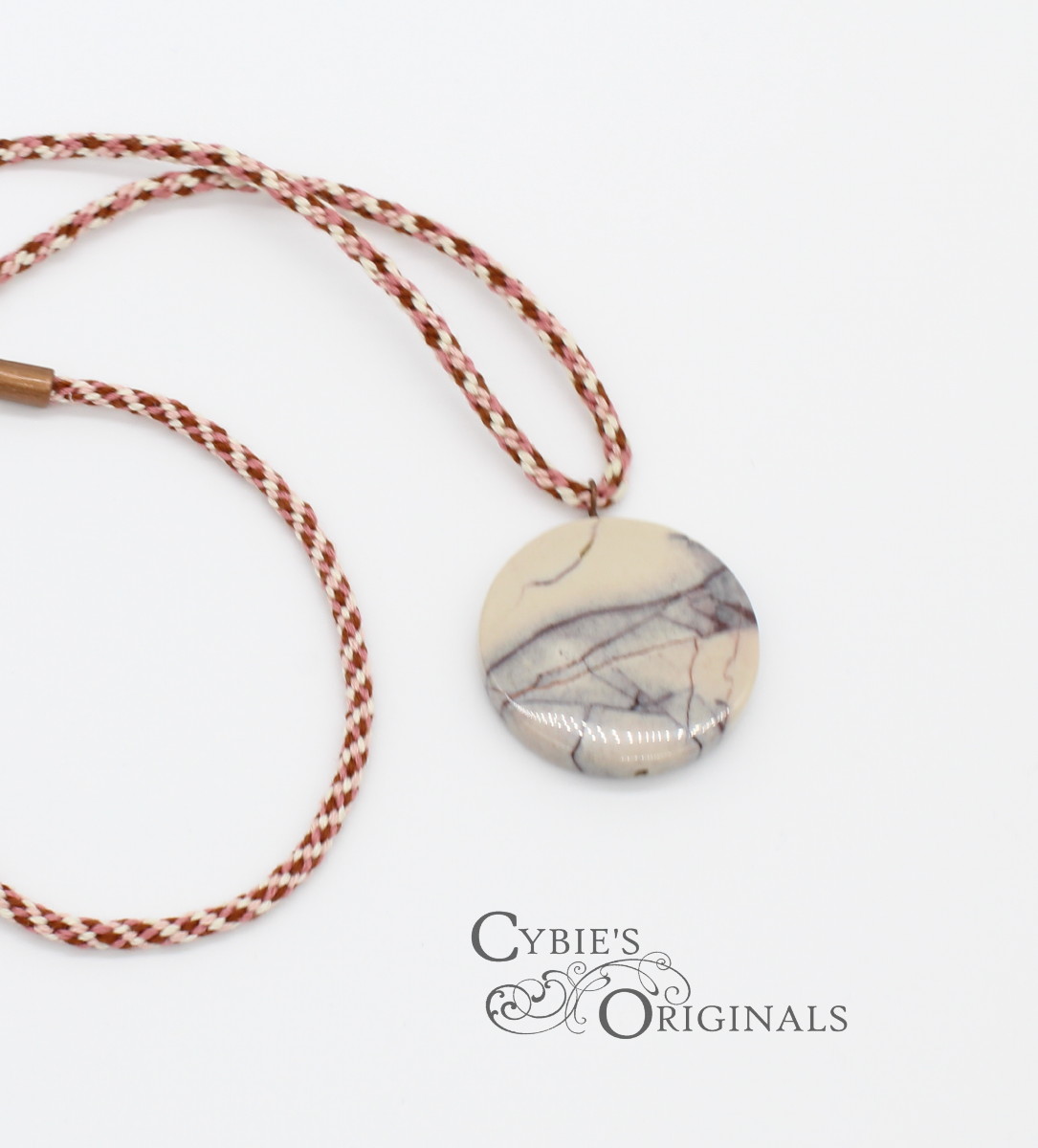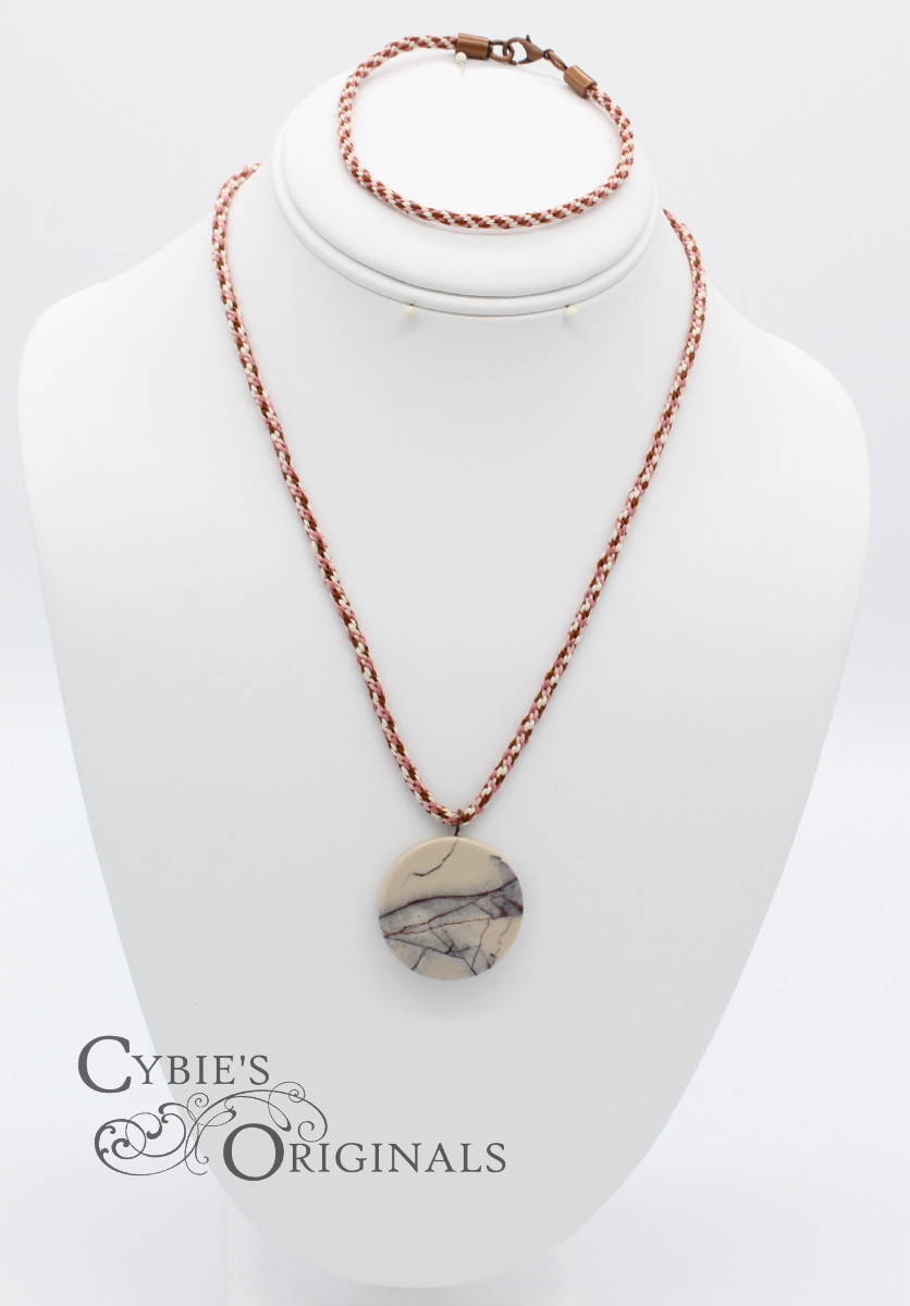Hand woven cord adorned with a pretty Picture Jasper pendant with matching corded bracelet.