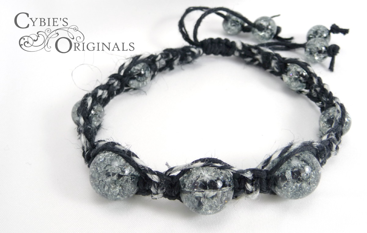 B/W crackle glass hemp bracelet