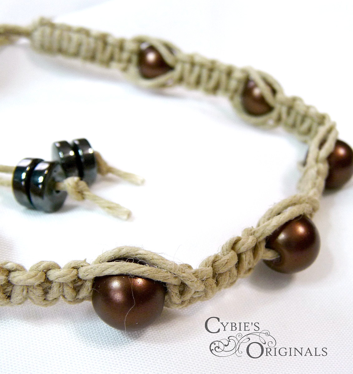 Brown glass pearls on natural polished hemp. Macrame knotted bracelet. Great stacking bracelet.