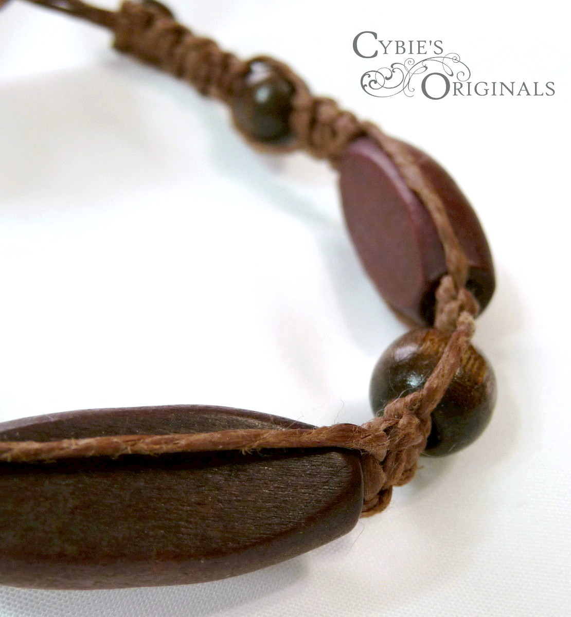 Brown wooden beads on polished brown hemp. Macrame knotted bracelet. Great stacking bracelet.